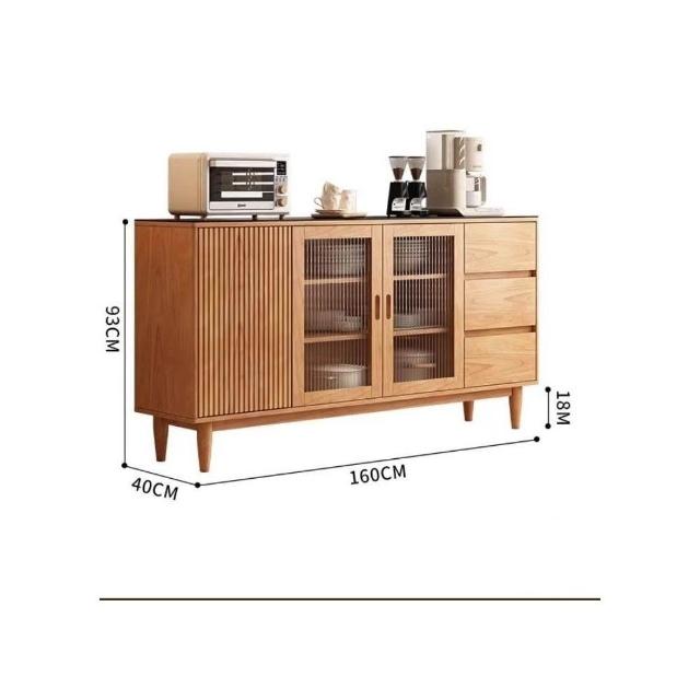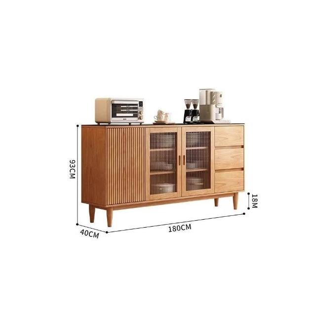 實木原木餐邊櫃櫻桃木色現代咖啡櫃家用客廳一體高櫃儲物櫃酒櫃 餐邊櫃 儲物櫃 茶水櫃 抽屜櫃 收納櫃 櫥櫃 茶櫃 邊櫃鬥櫃