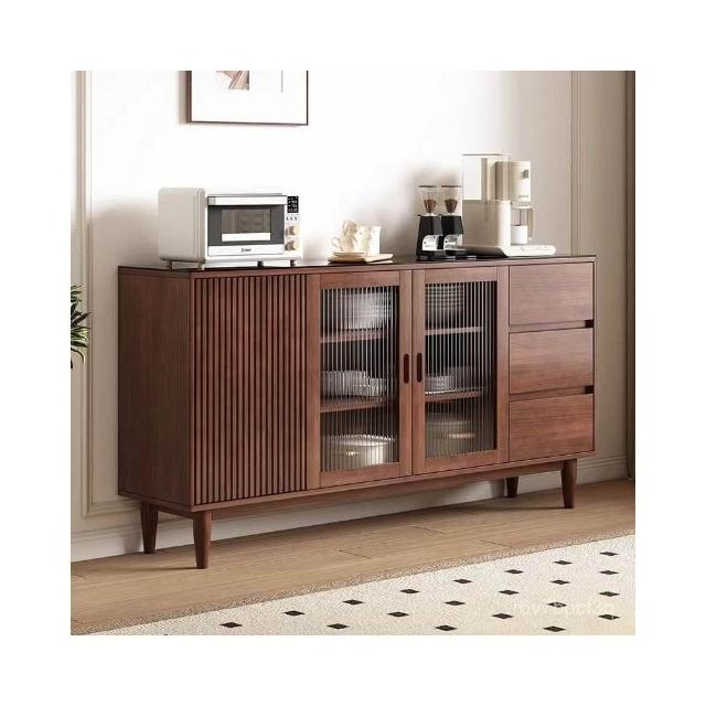 實木原木餐邊櫃櫻桃木色現代咖啡櫃家用客廳一體高櫃儲物櫃酒櫃 餐邊櫃 儲物櫃 茶水櫃 抽屜櫃 收納櫃 櫥櫃 茶櫃 邊櫃鬥櫃
