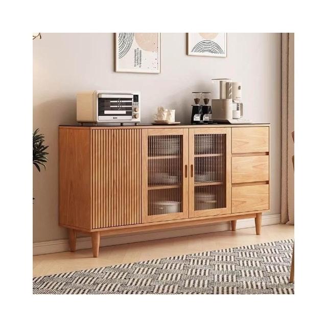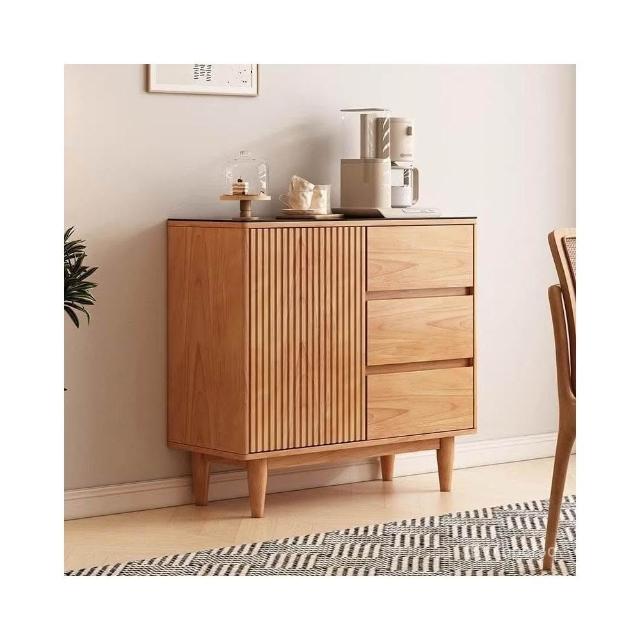 實木原木餐邊櫃櫻桃木色現代咖啡櫃家用客廳一體高櫃儲物櫃酒櫃 餐邊櫃 儲物櫃 茶水櫃 抽屜櫃 收納櫃 櫥櫃 茶櫃 邊櫃鬥櫃