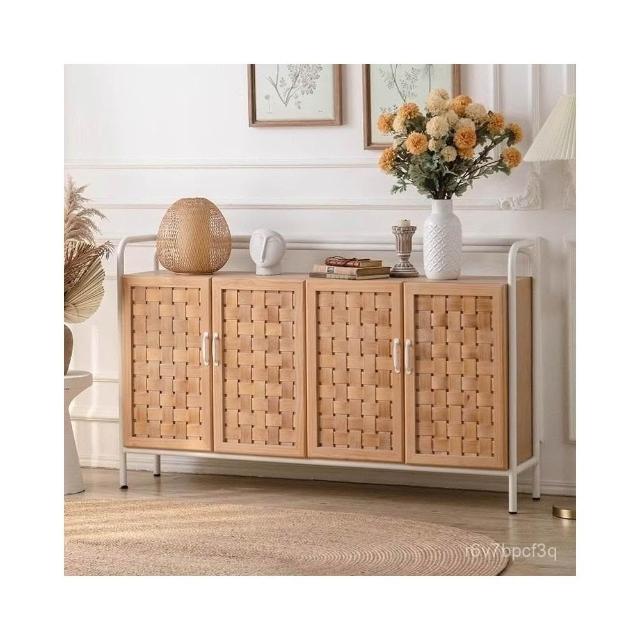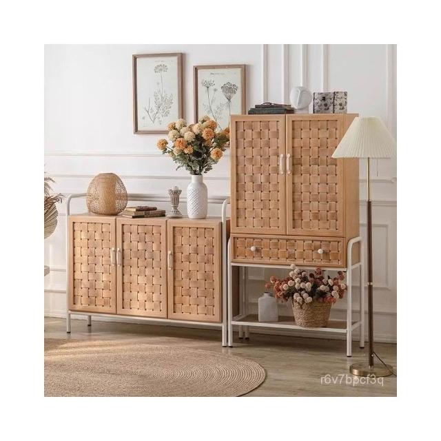 法式複古藤編餐邊櫃實木儲物櫃薄櫃子靠墻客廳原木色多功能茶水櫃 餐邊櫃 儲物櫃 茶水櫃 抽屜櫃 收納櫃 櫥櫃 茶櫃 邊櫃