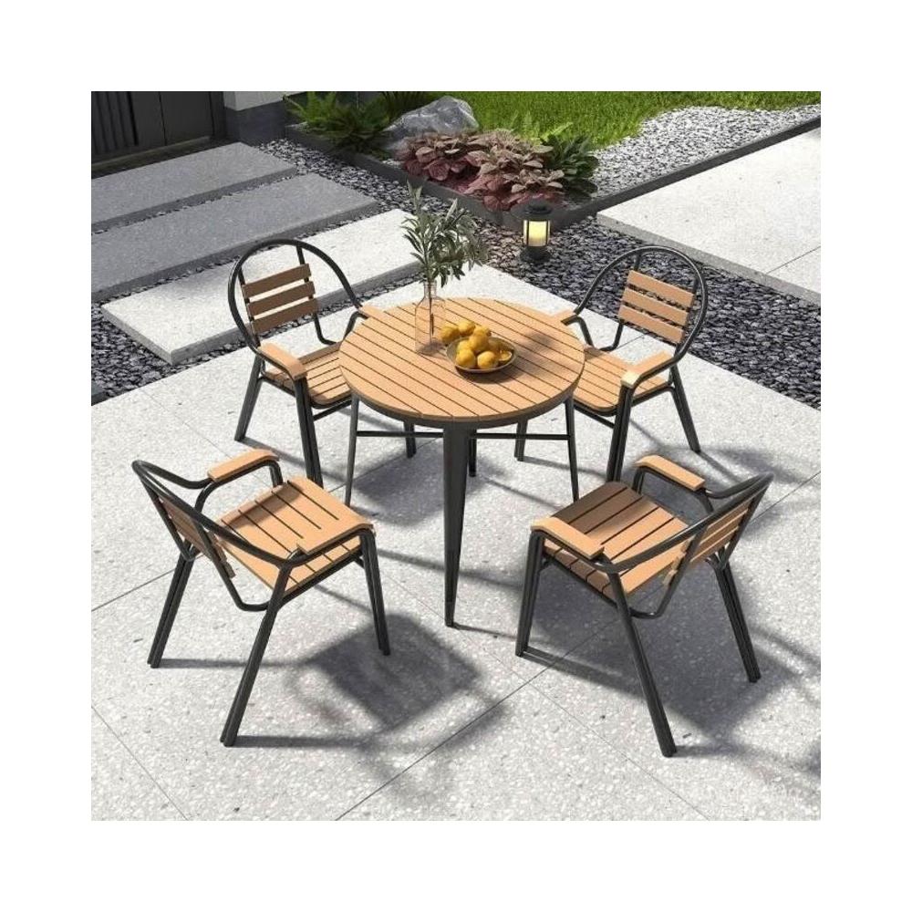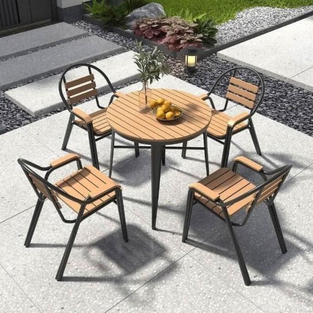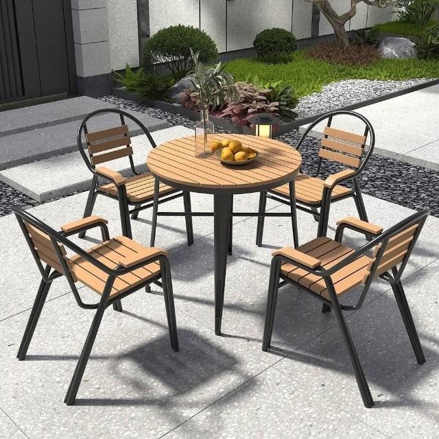 戶外桌椅 陽臺庭院桌子 簡約桌椅 花園休閒室外桌椅 北歐戶外防雨防曬塑木桌椅組閤
