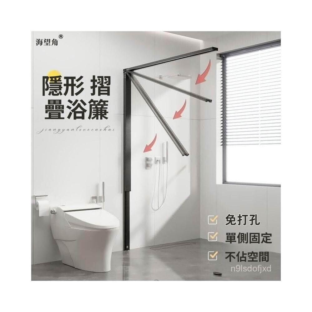 折疊隱形浴簾浴室免打孔淋浴隔斷簾衛生間洗澡防水布掛簾套裝磁吸 浴簾 折疊浴簾 防水浴簾 浴室簾 浴室門簾