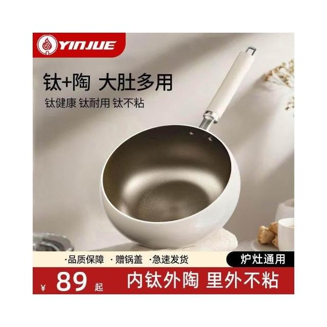 銀爵有鈦陶瓷大肚鍋不粘鍋炒鍋家用不沾平底炒菜鍋燃氣電磁爐通用