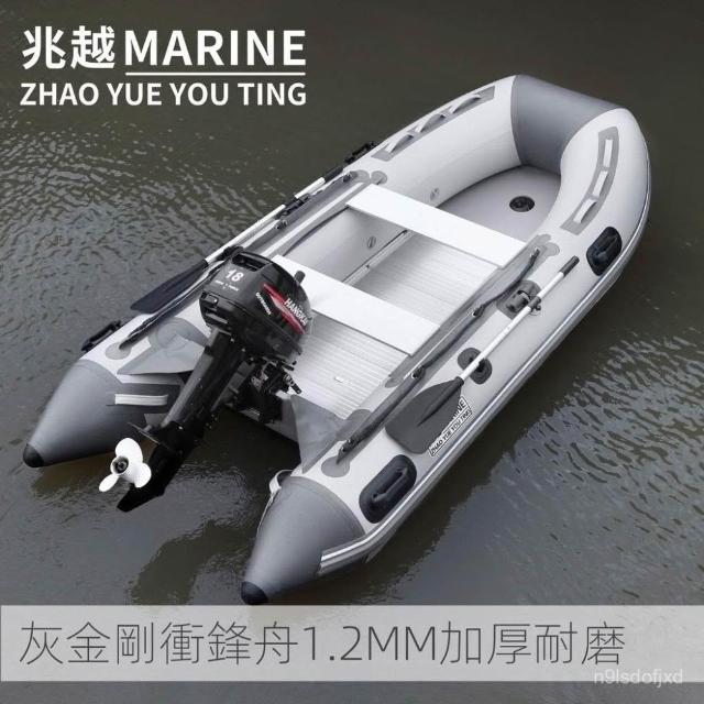 兆越灰金剛衝鋒舟路亞鋁閤金V底橡皮艇 巡邏救援充氣船硬底釣魚船 充氣橡皮艇 皮劃艇 充氣船 釣魚船 衝鋒艇