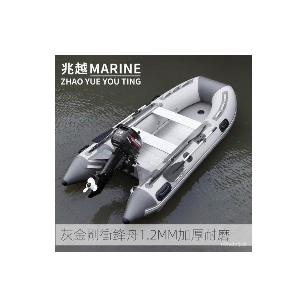 兆越灰金剛衝鋒舟路亞鋁閤金V底橡皮艇 巡邏救援充氣船硬底釣魚船 充氣橡皮艇 皮劃艇 充氣船 釣魚船 衝鋒艇