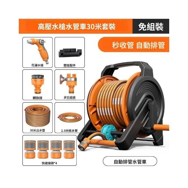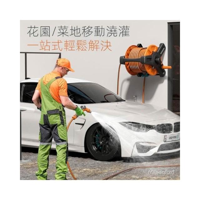 高壓洗車水槍家用澆花水管軟管神器強力衝洗收捲器自動收納車架子 庭院花灑 花園噴水槍 水管收納架 收納神器