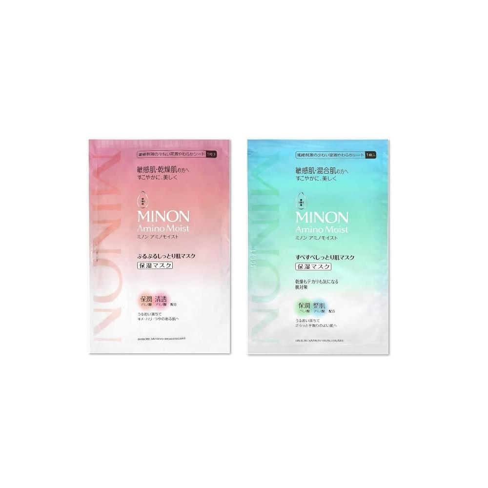 MINON【MINON 蜜濃 氨基酸保濕面膜 盒裝4片入 水潤保濕修護-粉/淨肌平衡保濕-藍】現貨 日本境內版
