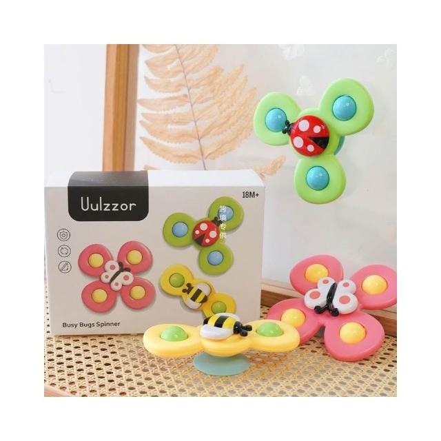 轉動盤 旋轉昆蟲花朵 寶寶餐桌椅3入 吸盤轉轉樂 陀螺 指尖陀螺 兒童玩具 吸盤旋轉玩具 固齒器