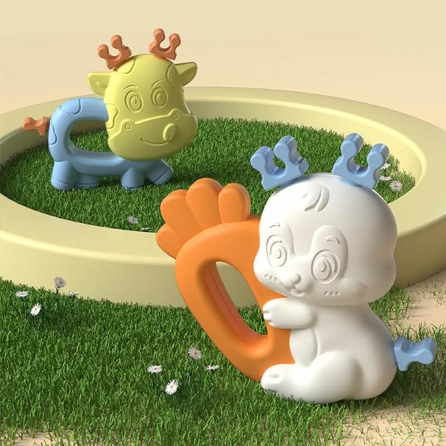 嬰兒牙膠搖鈴 手搖鈴 早教牙膠玩具 水煮牙膠 牙膠安撫套裝 安撫玩具 牙膠玩具 可啃咬 可水煮 馬卡龍色