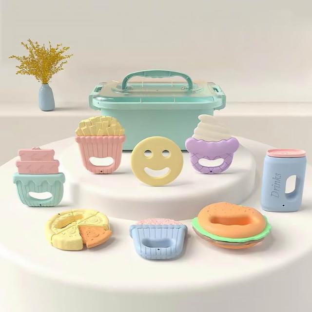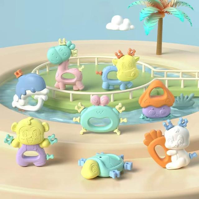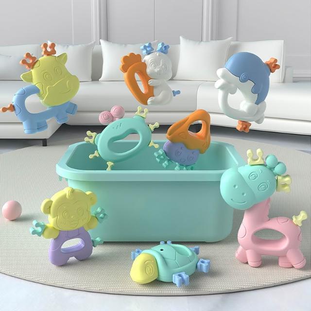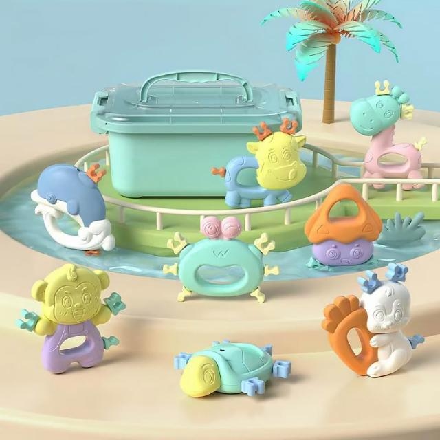 嬰兒牙膠搖鈴 手搖鈴 早教牙膠玩具 水煮牙膠 牙膠安撫套裝 安撫玩具 牙膠玩具 可啃咬 可水煮 馬卡龍色