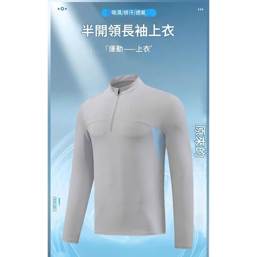2025台灣發出 運動衣 吸濕排汗衣 長袖涼感衣 大碼排汗衫 立領訓練衣男 吸濕速乾長袖男 男長袖上衣 登山排汗衣 彈力緊身長袖