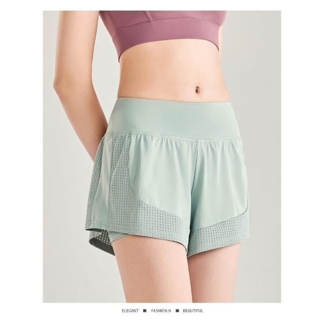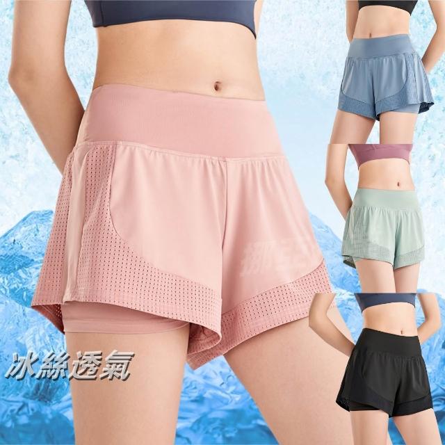 2025台灣發出 假兩件 短褲女 運動短褲女 涼感短褲 速乾短褲女 瑜伽短褲 健身短褲女 夏天短褲女 防走光 海灘褲女