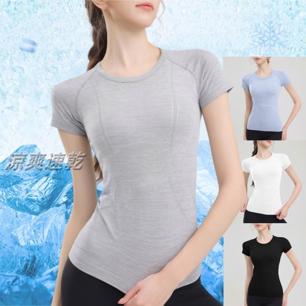 涼感衣女瑜伽服吸濕排汗衫女跑步登山健身運動上衣女高彈力修身訓練速乾衣女短版上衣T恤日常休閒輕薄透氣上衣女冰絲涼感短袖女