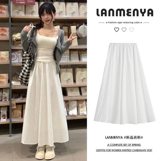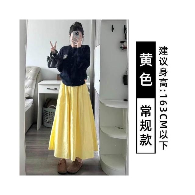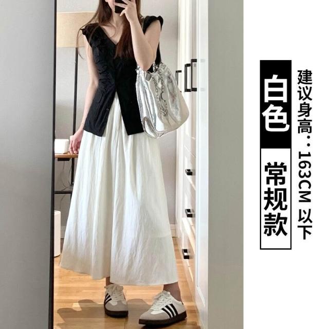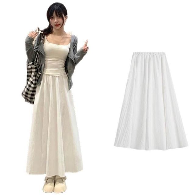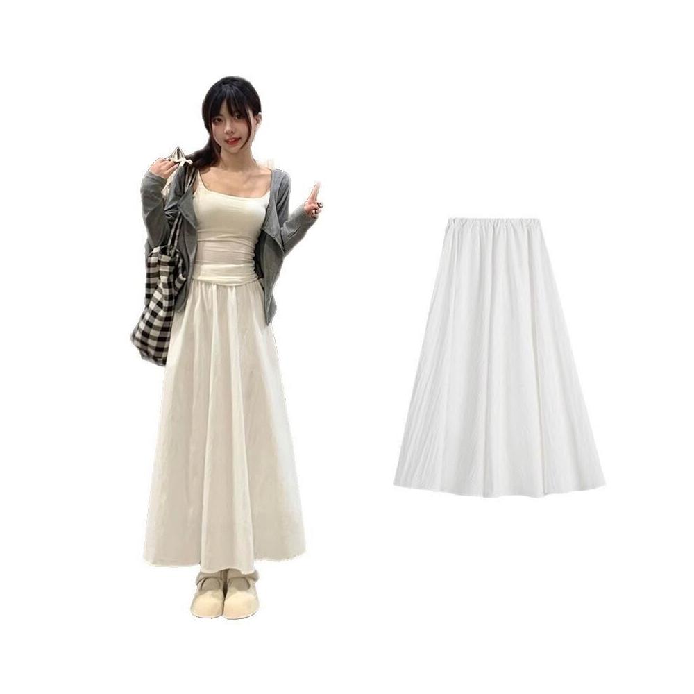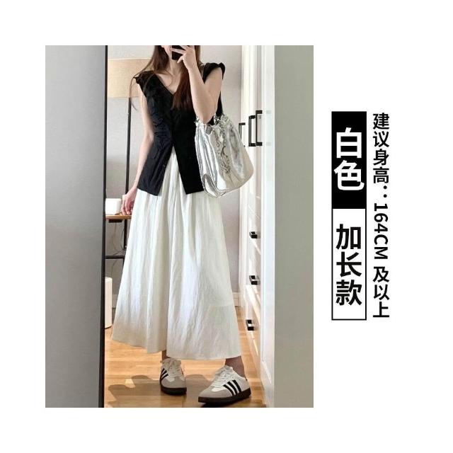 半身裙女夏季長款2025年新款高級感傘裙中長款百褶裙子a字半裙白色長裙女休閒鬆緊腰長裙(長裙 半身裙 裙子 女裝 )