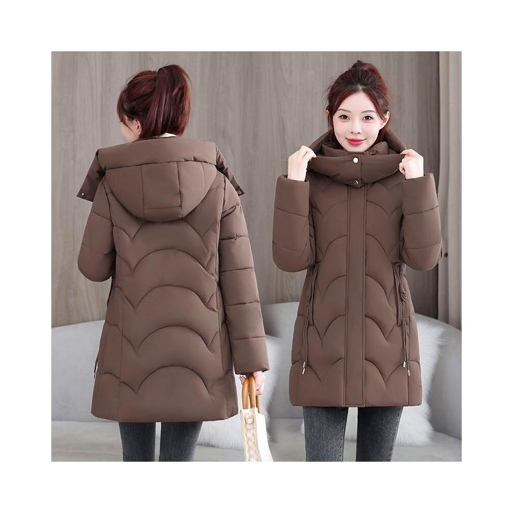 加厚保暖連帽長袖棉衣女2025冬季新款韓系高檔寬松小個子棉服外套中長款冬季保暖寬松外套潮面包服純色日韓休閑風修身溫柔甜美