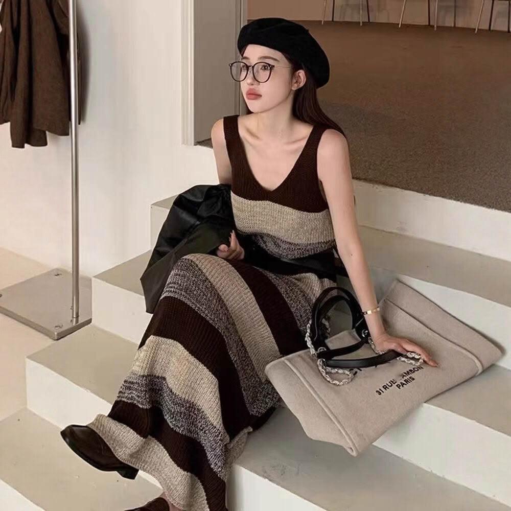 洋裝女長裙半身裙女夏天薄款韓版法式顯瘦短袖上衣女無袖洋裝女生a字裙高級感小個子氣質長裙連衣裙女長款吊帶裙(修身/度假風)