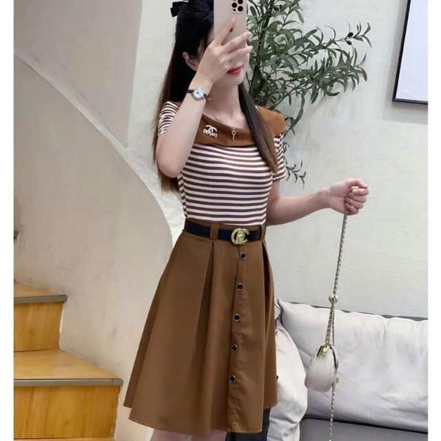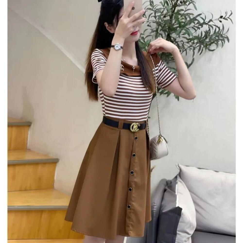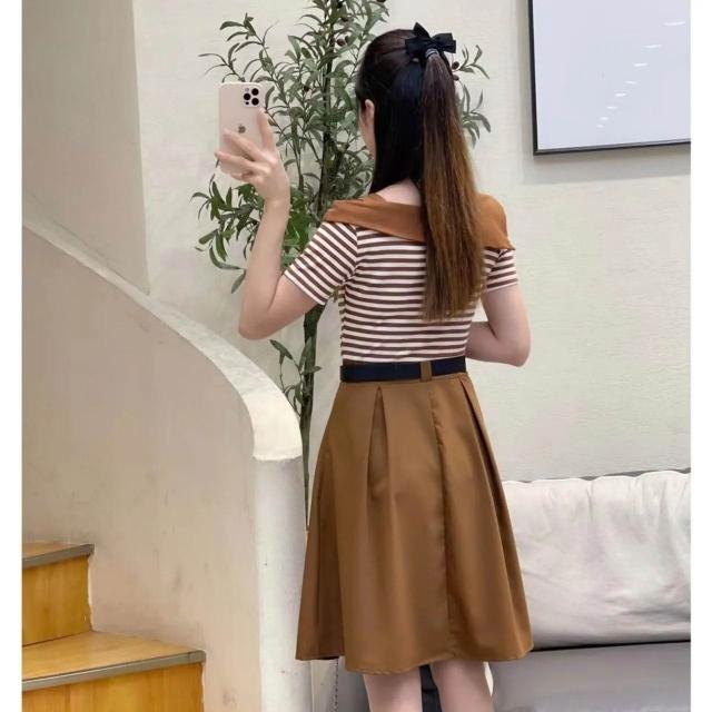 洋裝女長裙半身裙女夏天薄款韓版法式顯瘦短袖上衣女無袖洋裝女生a字裙高級感小個子氣質長裙連衣裙女長款吊帶裙(修身/小香風)
