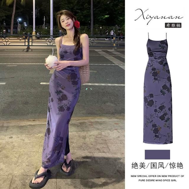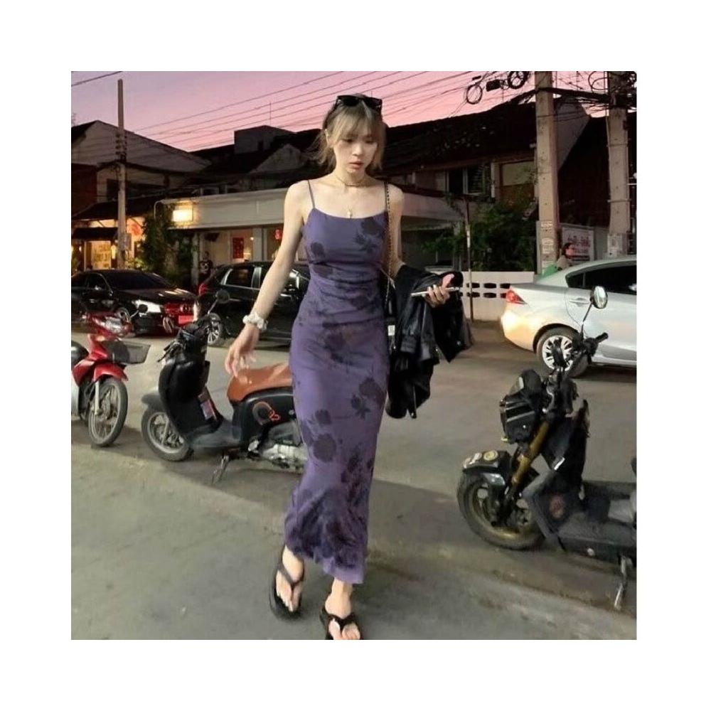 連衣裙女長裙吊帶裙女夏天薄款韓版法式顯瘦短袖上衣女無袖洋裝女生a字裙高級感小個子氣質長裙連衣裙女長款吊帶裙(修身御姐風)