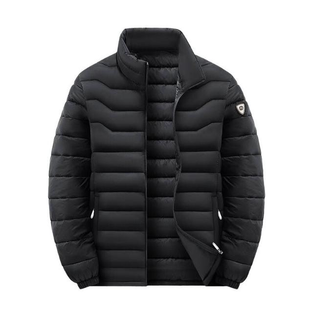 羽絨棉棉衣男士冬季外套青年加絨加厚保暖潮流韓版冬季保暖寬松外套潮面包服純色立領羽絨外套冬季夾克短款外套防風防寒羽絨衣外套