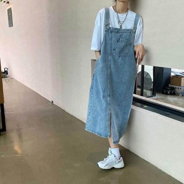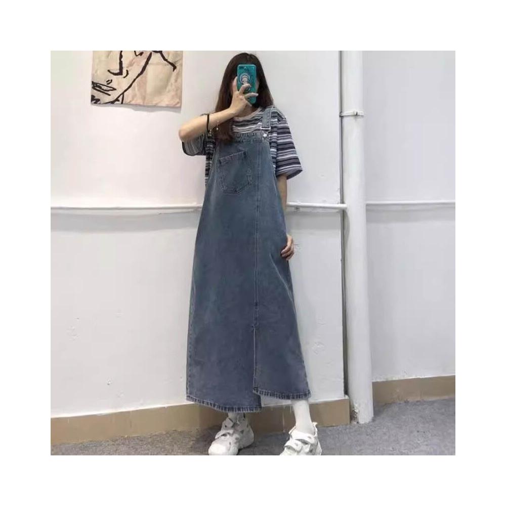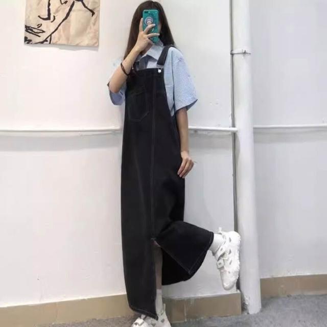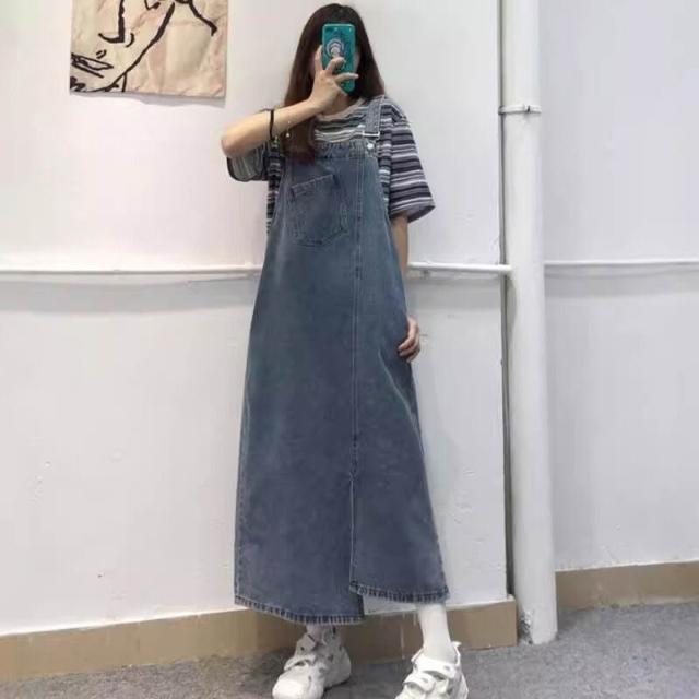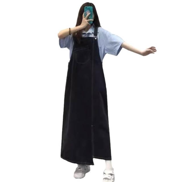 連衣裙女長裙牛仔背帶裙女鹽系不規則開叉牛仔背帶裙女2025秋季新款寬松顯瘦長款吊帶連衣裙半身裙女洋裝裙子直筒裙女