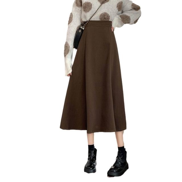 半身裙長裙A字裙休閒短裙洋裝裙子秋冬季長袖小眾設計感連衣裙洋裝裙裙子毛呢咖色半身裙女春秋中長款高腰小個子秋冬a字百褶裙