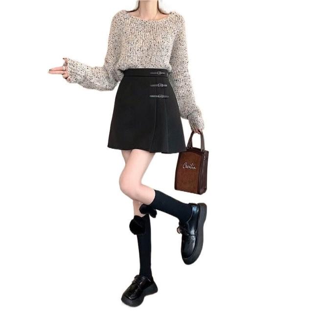 裙子半身裙長裙A字裙休閒短裙洋裝裙子秋冬季小眾設計感連衣裙洋裝裙加厚毛呢半身裙大碼短裙女秋冬新款胖mm高腰顯瘦遮胯百褶裙