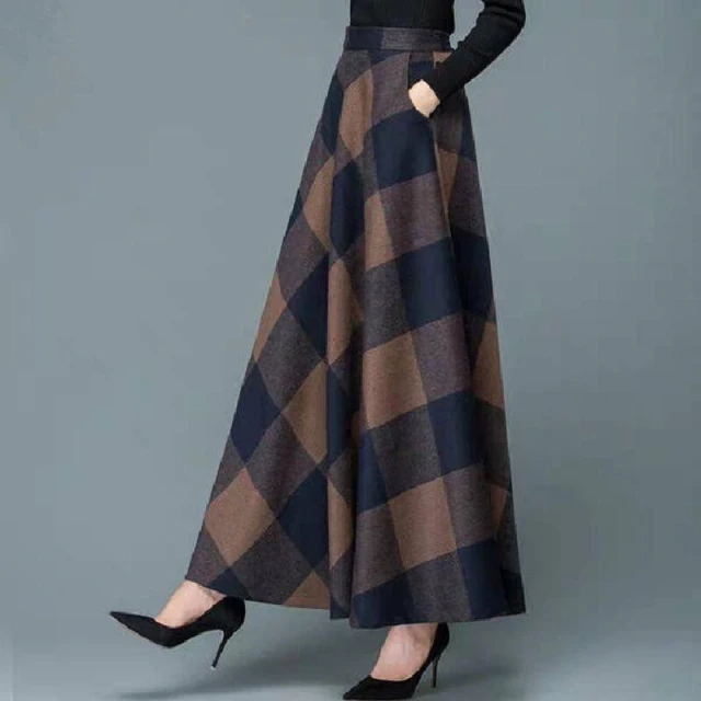 半身裙長裙A字裙休閒短裙洋裝裙子秋冬季長袖小眾設計感連衣裙洋裝裙 裙子 毛呢格子半身裙a字裙大擺長裙中長款裙子女秋冬冬季