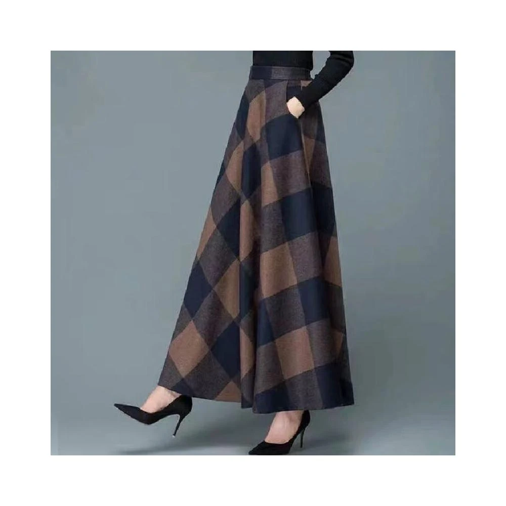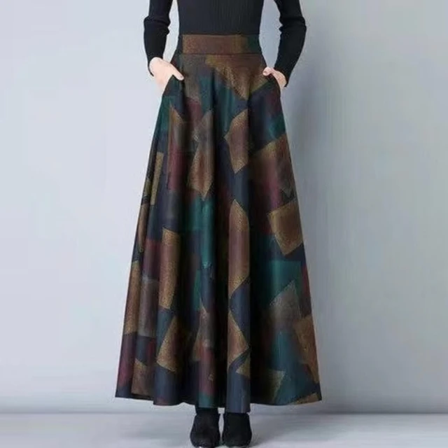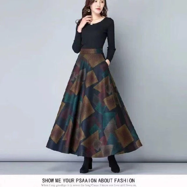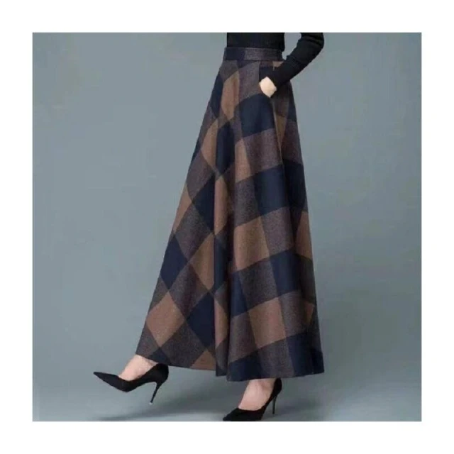 裙子半身裙長裙A字裙休閒短裙洋裝裙子秋冬季長袖小眾設計感連衣裙洋裝裙 秋冬格子半身裙女新款大碼中長款a字裙大擺裙高腰顯瘦