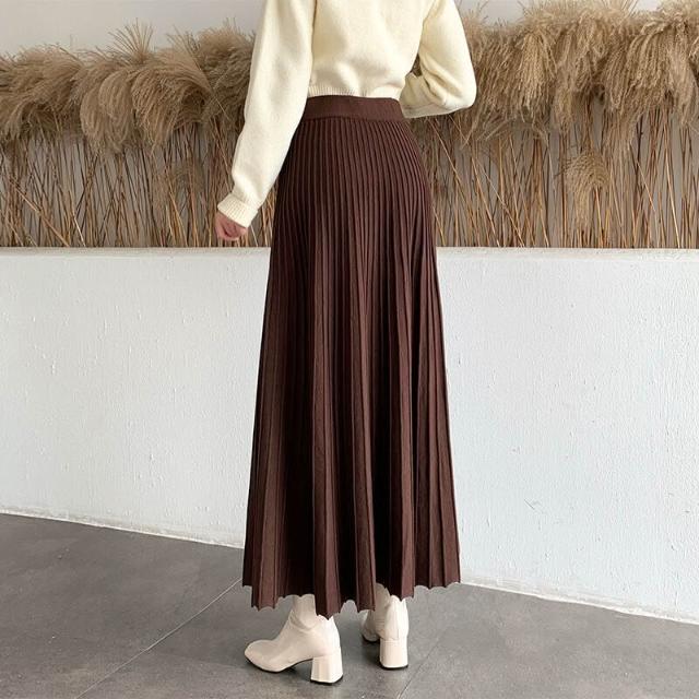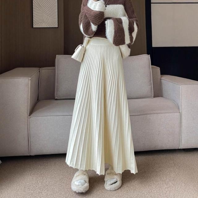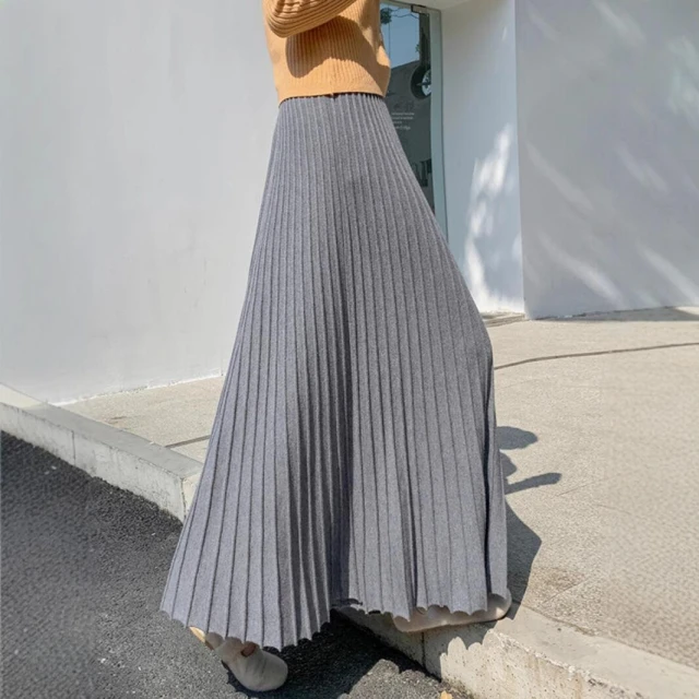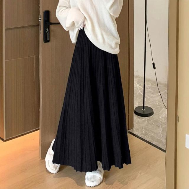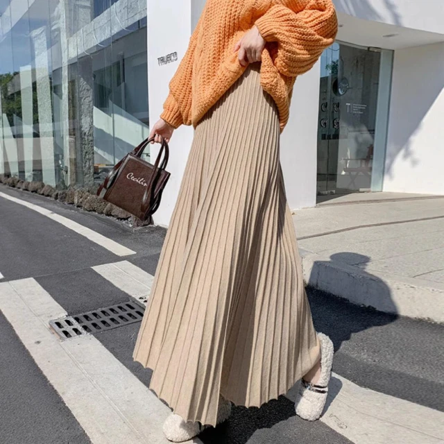 半身裙長裙A字裙休閒短裙洋裝裙子秋冬季長袖小眾設計感連衣裙洋裝裙 針織半身裙女秋冬a字裙高腰顯瘦松緊腰垂感百褶大擺傘裙子