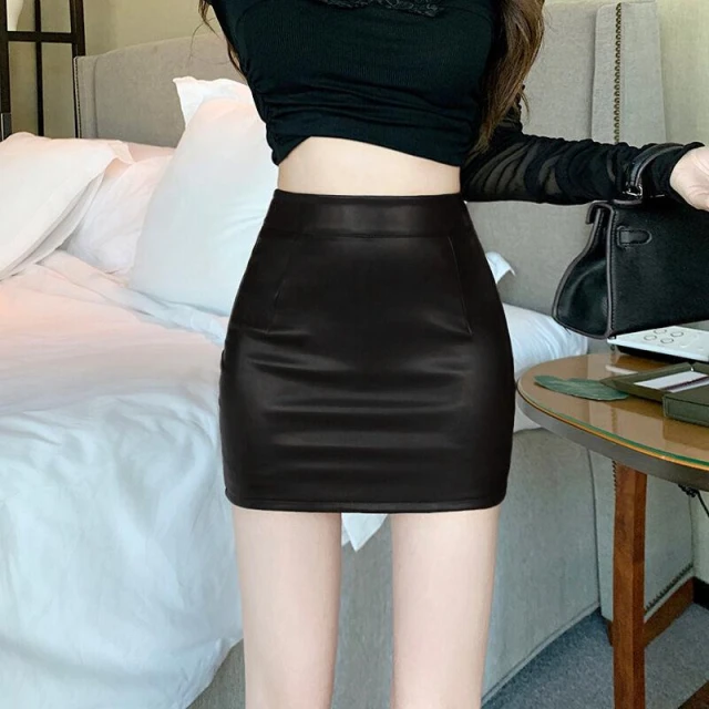 裙子半身裙長裙A字裙休閒短裙洋裝裙子秋冬季長袖小眾設計感連衣裙洋裝裙 棕色包臀皮裙半身裙女秋冬新款高腰顯瘦緊身性感皮短裙