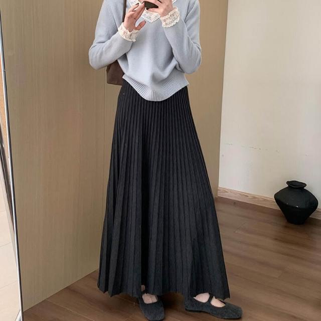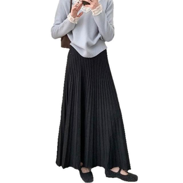 裙子半身裙長裙A字裙休閒短裙洋裝裙子秋冬季長袖小眾設計感連衣裙洋裝裙 高腰顯瘦羊絨加厚百褶半身裙2025冬季新款韓版百搭
