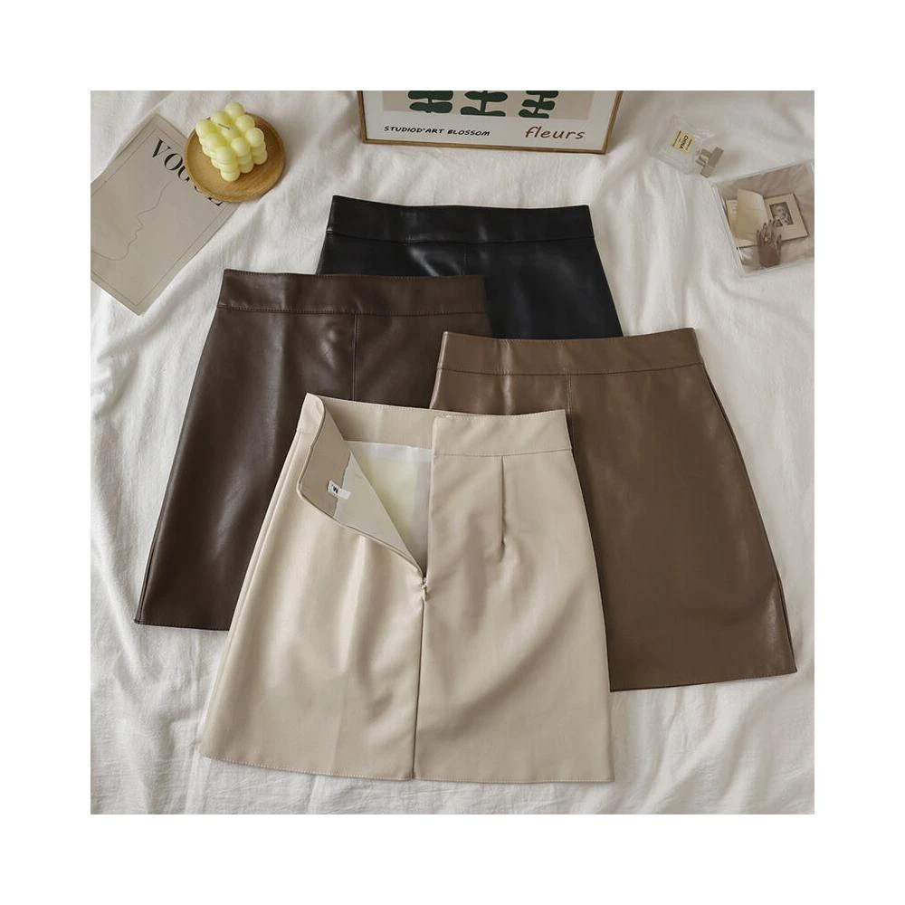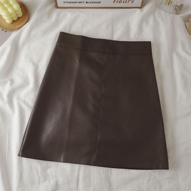 裙子半身裙長裙A字裙休閒短裙洋裝裙子秋冬季長袖小眾設計感連衣裙洋裝裙PU皮裙a字半身裙女秋冬新款黑色遮胯短裙子小個子高腰