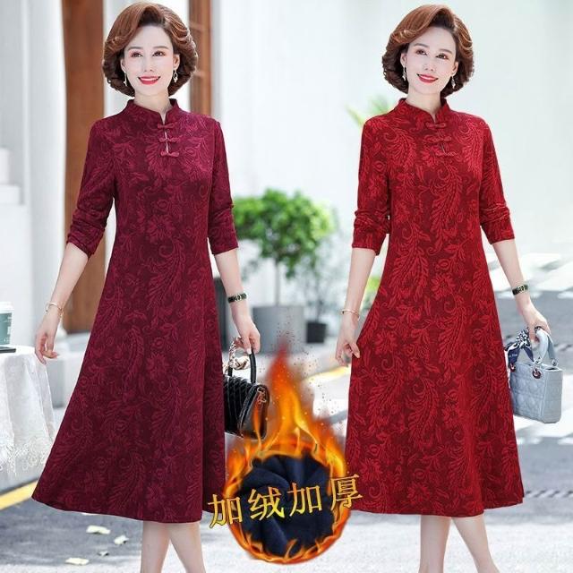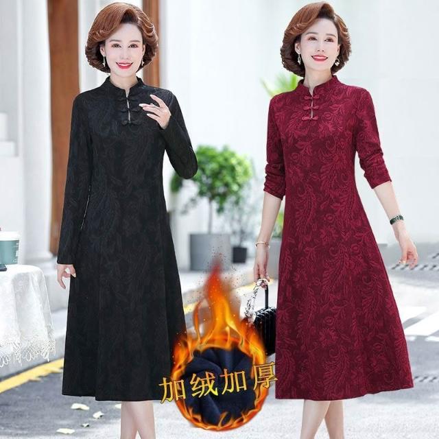改良式旗袍洋裝新中式旗袍裙女上衣2025新款旗袍式洋裝連身裙修身中年媽媽秋冬新款改良旗袍裙子女加絨長袖過膝氣質顯瘦連衣裙
