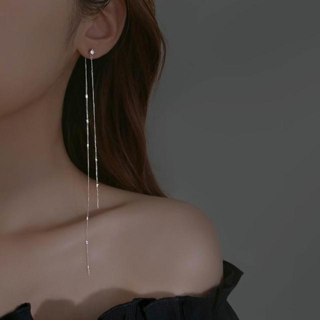 耳環純銀長流蘇耳環女新款小眾高級感氣質名媛耳線耳飾鏈輕盈精緻輕奢高級韓國不過敏高品質看不膩超閃耳環耳飾飾品配禮服百搭禮物