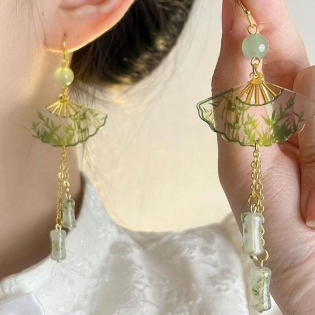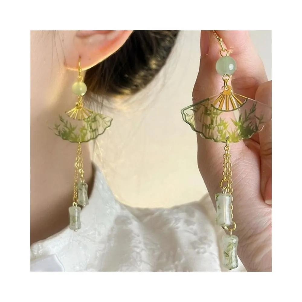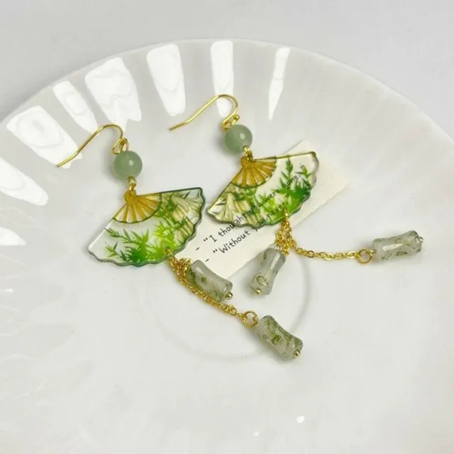 耳環新中式折扇青竹耳環國風透明女小眾古風漢服竹節耳墜新款耳飾輕盈精緻輕奢高級韓國不過敏看不膩耳環耳飾飾品配禮服百搭禮物