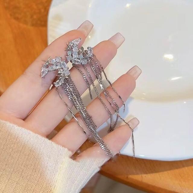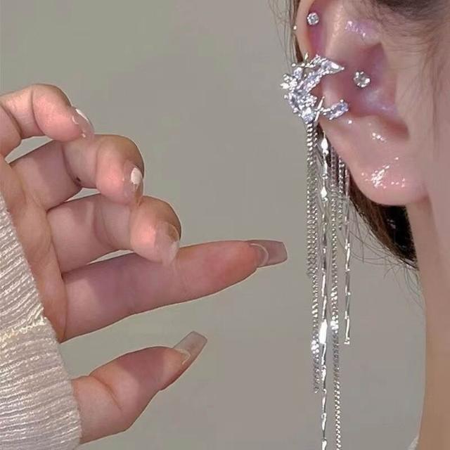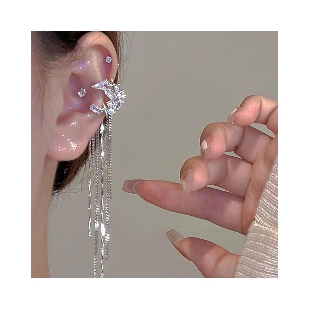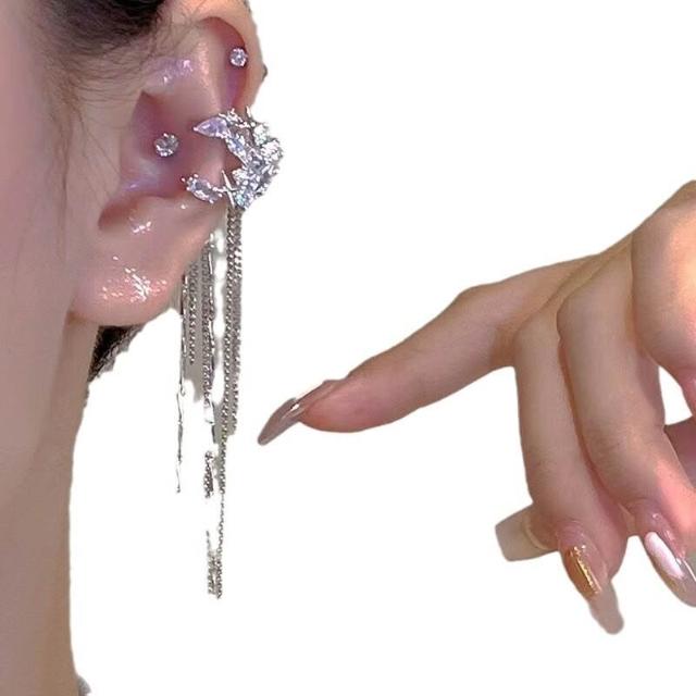 耳環锆石芒星月亮耳環女流蘇無耳洞耳夾氣質長款冷淡風月神降臨仙氣耳輕盈精緻輕奢高級韓國看不膩超閃耳環耳飾飾品配禮服百搭禮物