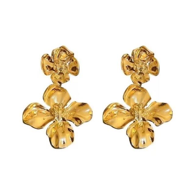 耳環金色花朵耳環女秋輕奢高級感小眾個性百搭氣質耳飾輕盈精緻輕奢高級韓國不過敏看不膩超閃耳環耳飾飾品配禮服百搭禮物韓系氣質