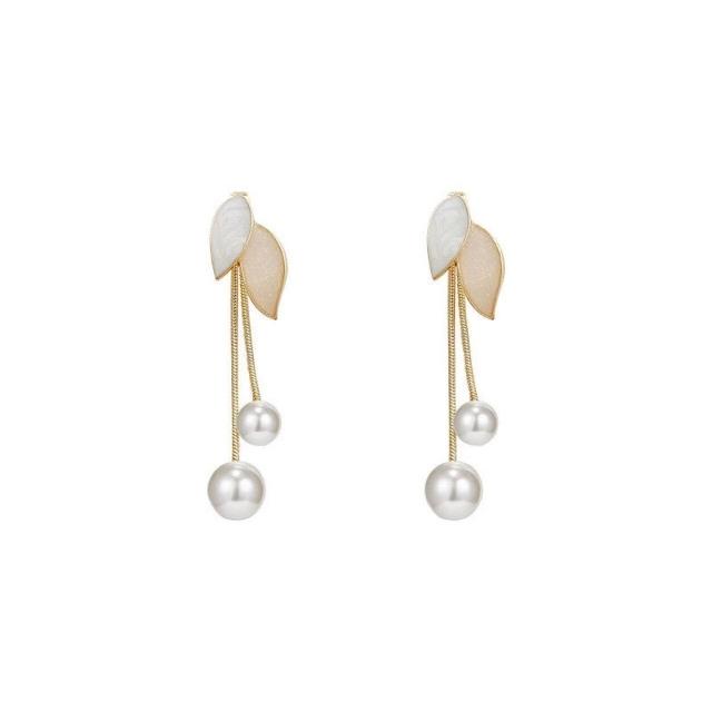 耳環韓國珍珠葉子流蘇耳環滴油長款耳墜氣質耳飾流蘇耳飾耳環輕盈精緻輕奢高級韓國不過敏看不膩超閃耳環耳飾飾品配禮服百搭禮物