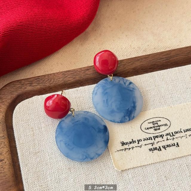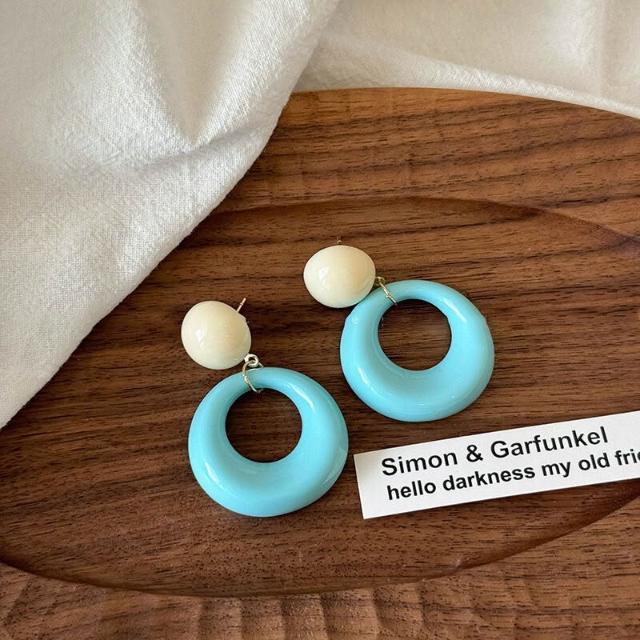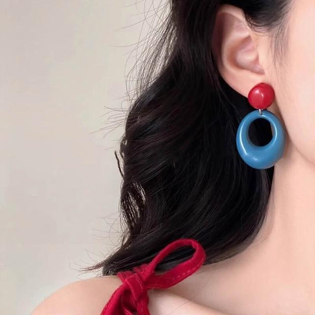 耳環氛圍圓圈撞色耳環女款度假風藍色耳釘小眾設計感誇張耳飾 不過敏看不膩超閃耳環耳飾飾品不褪色百搭禮物輕盈精緻輕奢高級韓國