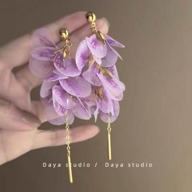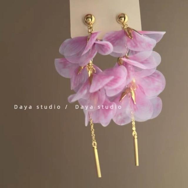 耳環氛圍感浪漫漸變紫色花瓣流蘇耳環高級感氣質耳釘女仙氣度假風耳飾不過敏超閃耳環耳飾飾品不褪色百搭禮物輕盈精緻輕奢高級韓國