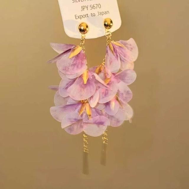 耳環氛圍感浪漫漸變紫色花瓣流蘇耳環高級感氣質耳釘女仙氣度假風耳飾不過敏超閃耳環耳飾飾品不褪色百搭禮物輕盈精緻輕奢高級韓國