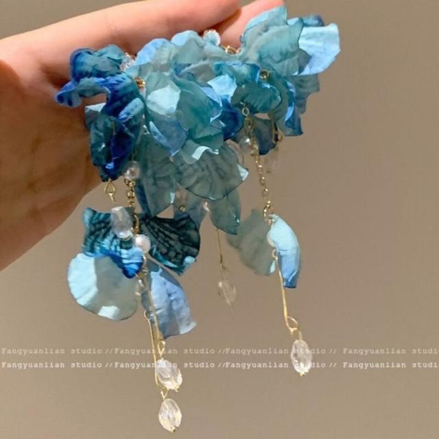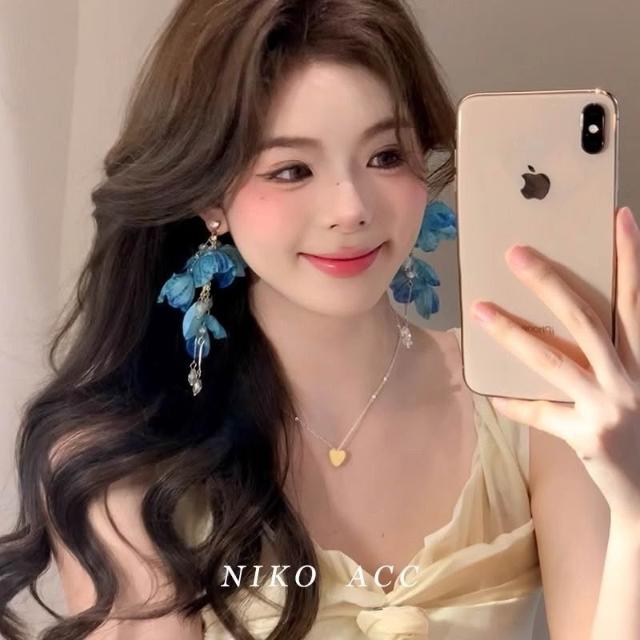 耳環夏天暮光冰萃藍花朵流蘇耳環女海邊度假風誇張耳釘絕美耳飾不過敏看不膩超閃耳環耳飾飾品不褪色百搭禮物輕盈精緻輕奢高級韓國
