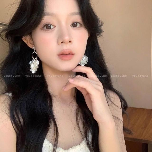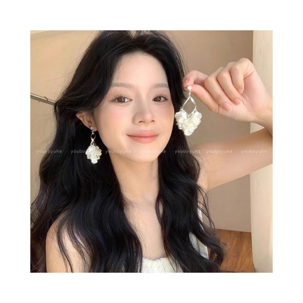 耳環法式貝殼花瓣流蘇耳環女款夏天輕奢小眾耳釘高級感無耳洞耳夾耳飾不過敏看不膩超閃耳環耳飾飾品百搭禮物輕盈精緻輕奢高級韓國