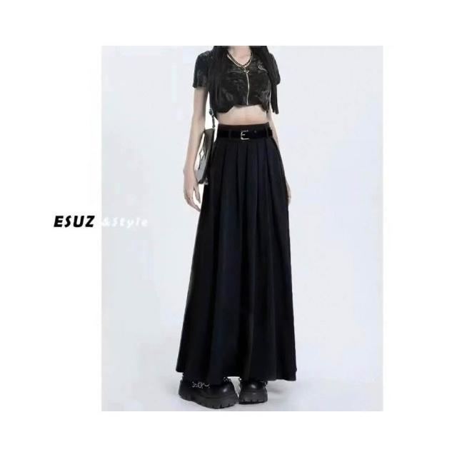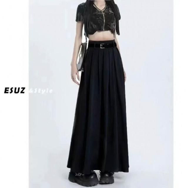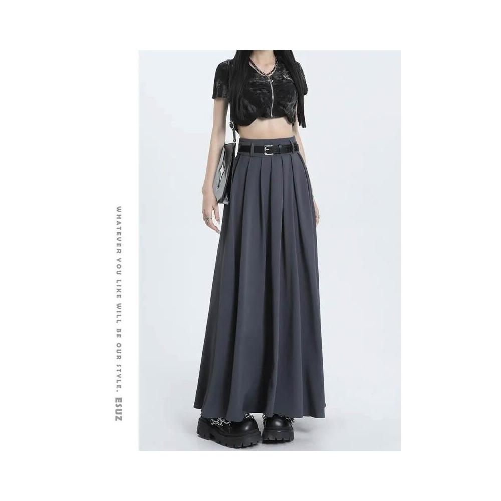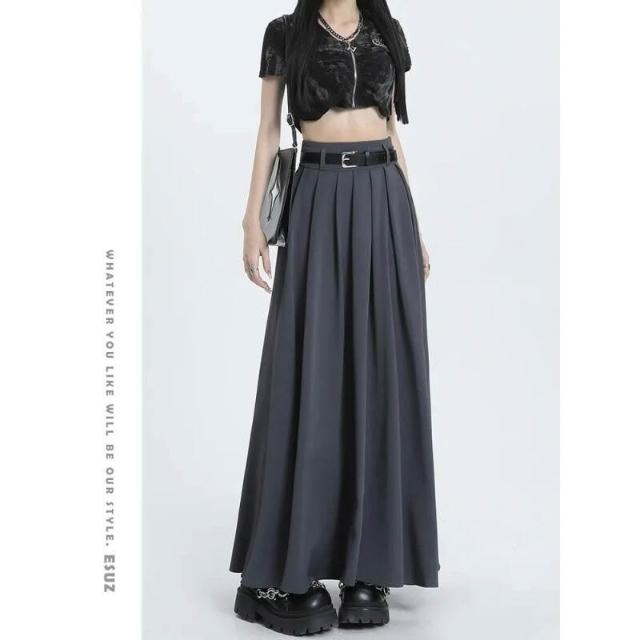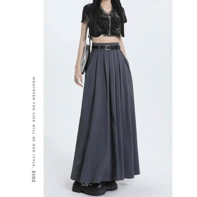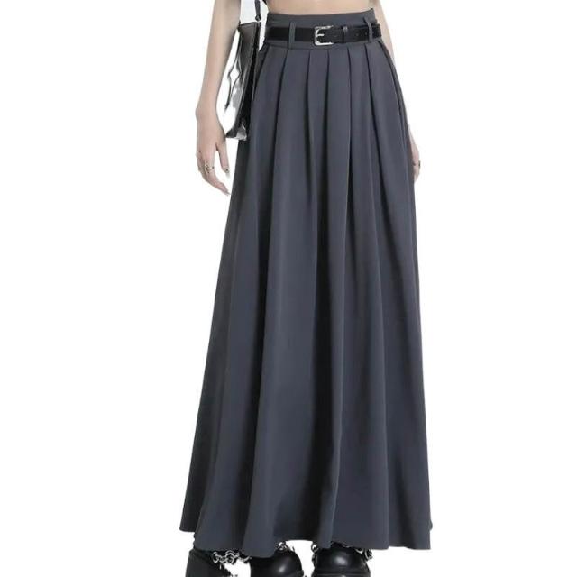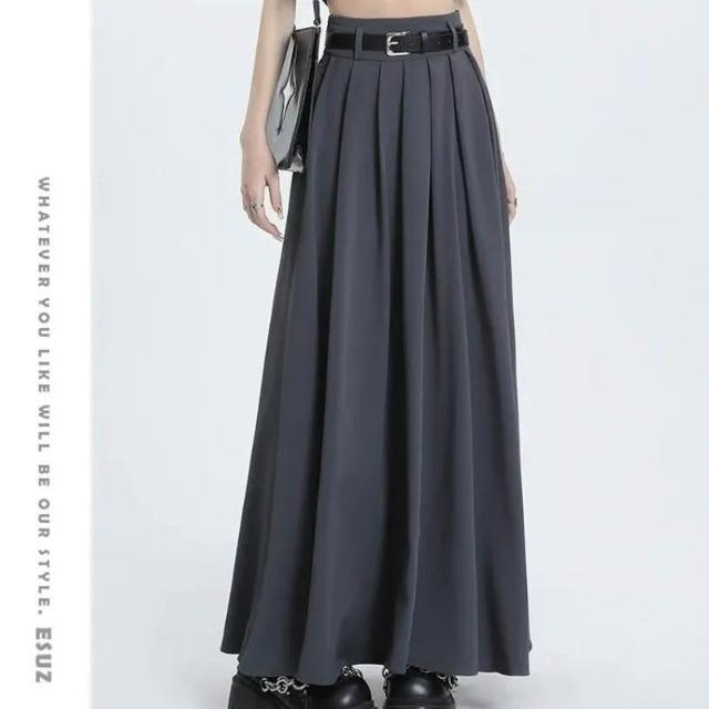 半身裙女秋冬季新款高腰顯瘦設計感灰色百褶裙子中長款A字半身裙女 半身裙女顯瘦A字裙女洋裝裙子女包臀裙設計感黑色休閒長裙