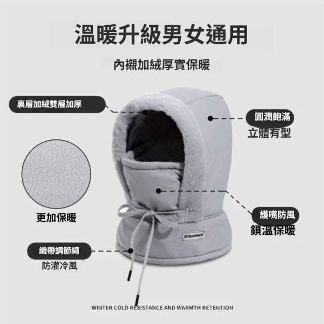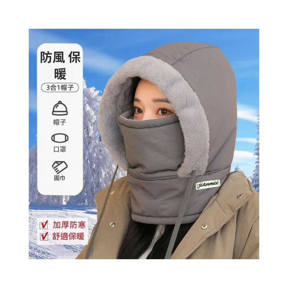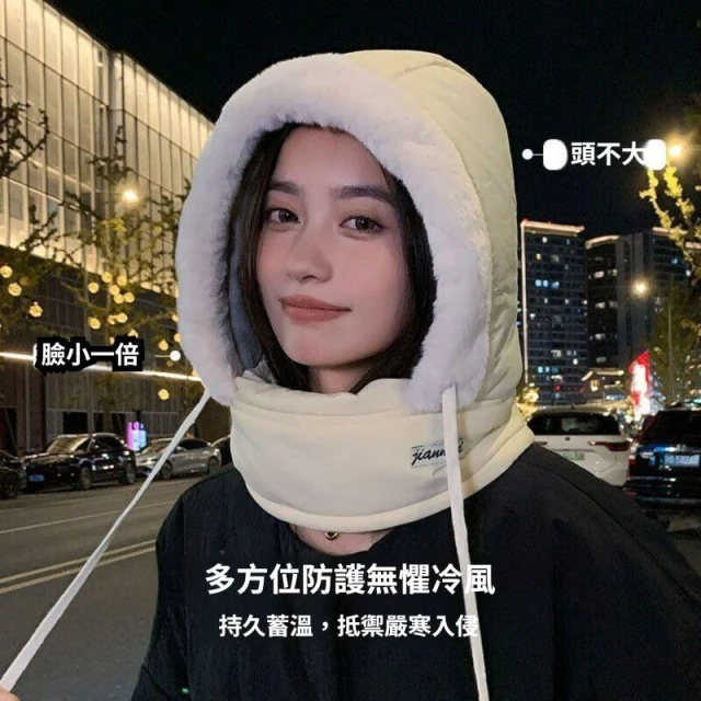 帽子加绒帽保暖雷鋒帽子防寒加絨厚圍脖一體面罩女騎車防風包頭騎行帽毛帽毛絨帽套頭帽護耳帽保暖帽遮耳防寒保暖套頭帽顯臉小防風