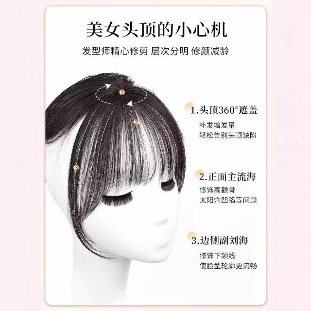 假髮髮片劉海假髮片頭頂補發真發高顱頂增髮量遮白髮假劉海自然八字蓬鬆仿真抓夾式修饰脸型假髮假髮补髮片假髮刘海假髮耳后短髮片