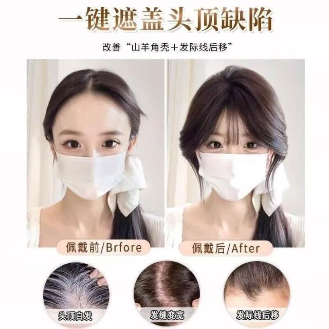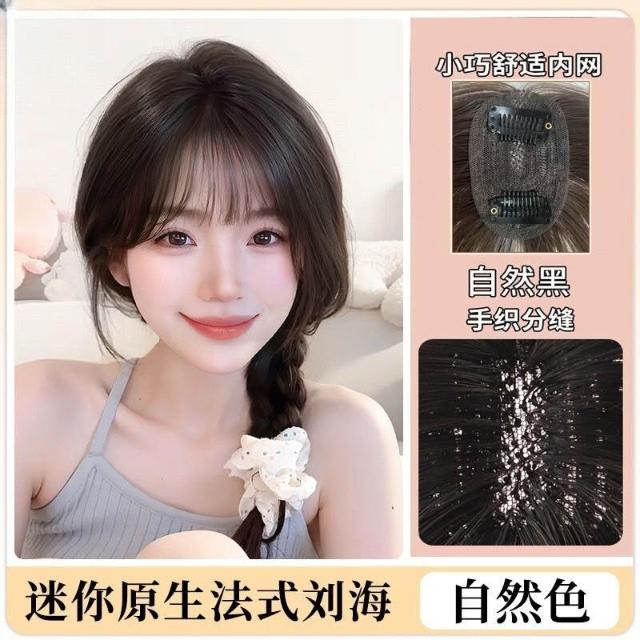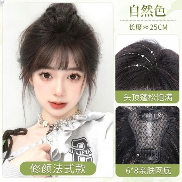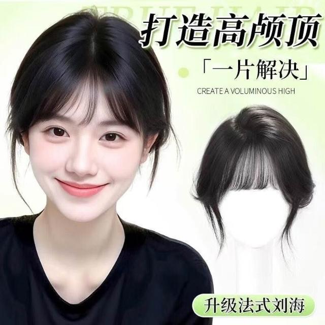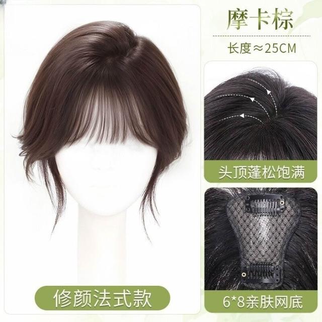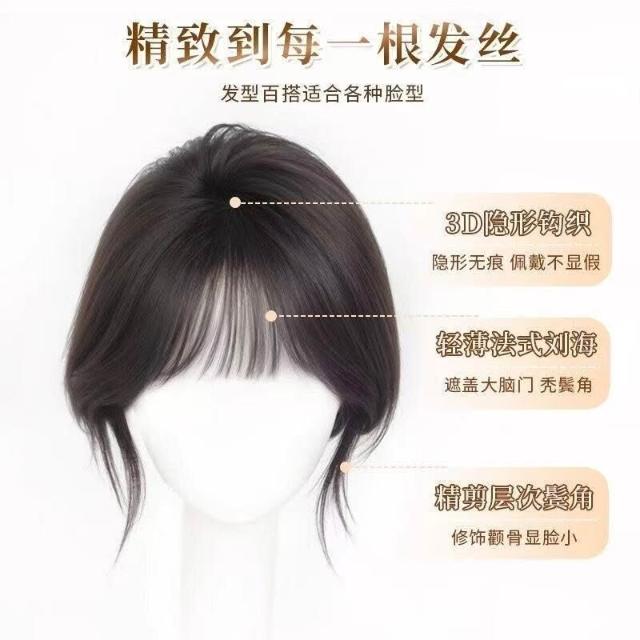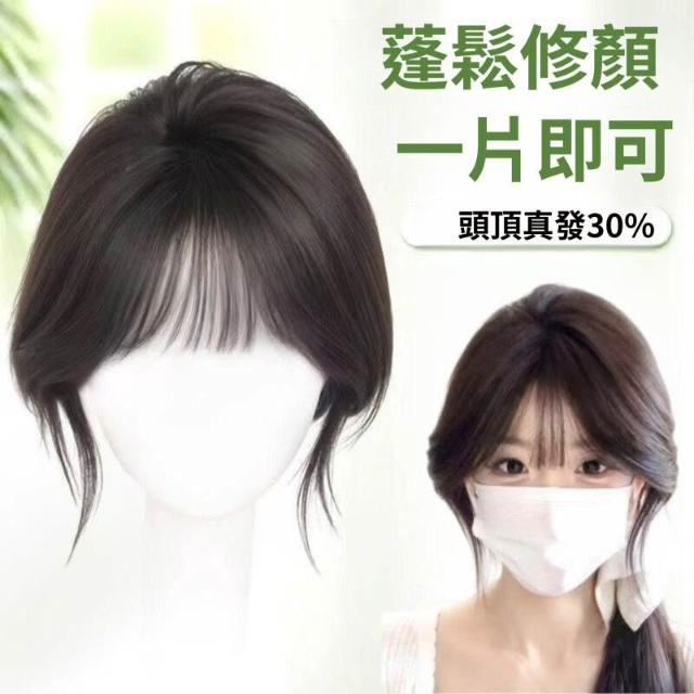 假髮髮片劉海假髮女片頭頂增髮量蓬鬆全真發高顱頂遮白髮輕薄法式假劉海片仿真抓夾式修飾臉型假髮假假髮補髮片劉海假髮耳後短髮片