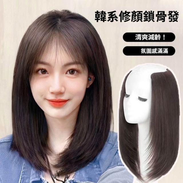 假髮髮片假髮一片式無痕假髮片增髮量蓬鬆鎖骨短髮隱形接發片捲髮仿真抓夾式修飾臉型假髮假髮套整頂假髮補髮片劉海假髮耳後短髮片