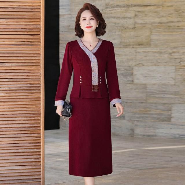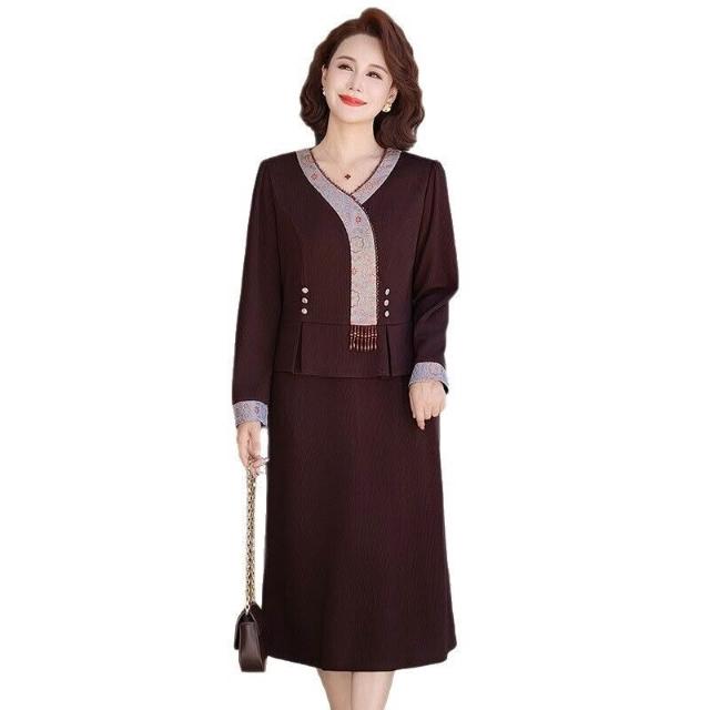 連衣裙洋裝氣質媽媽新款秋裝洋氣長袖連衣裙氣質中老年女式連身洋裝長款裙子媽媽裝寬鬆休閒連身裙中年女裝優雅風修身中長款連衣裙