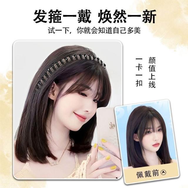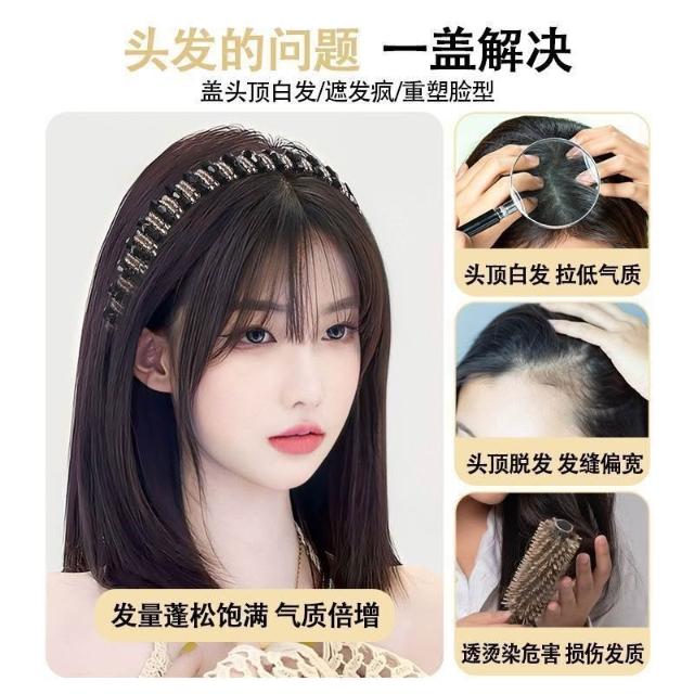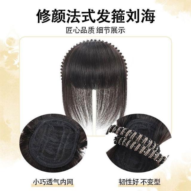 假髮劉海假發女自然前額水晶發箍劉海一體真發遮白發蓬松頭頂假髮片女透氣假髮片增髮量隱形假髮無痕假髮片假劉海修臉型劉海髮片